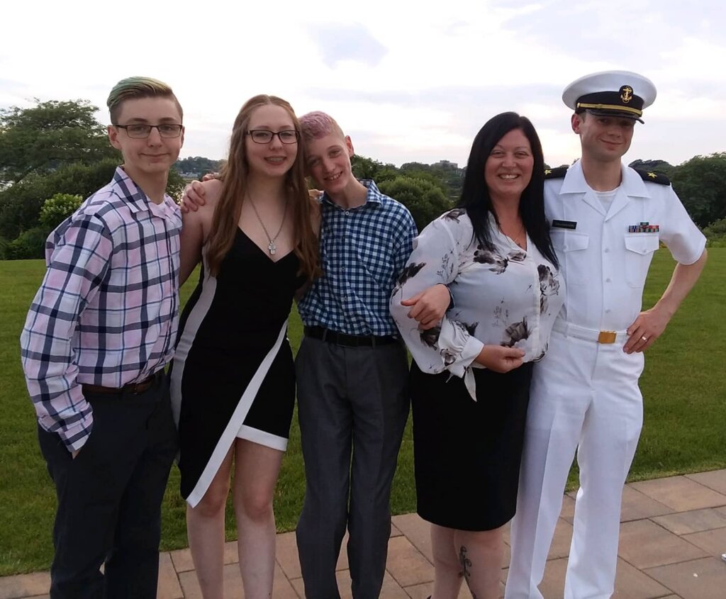 Cassandra’s Family – Logan, Rhiannon, JT, Cassandra and her husband LTJG Daniel O’Callaghan-Horn